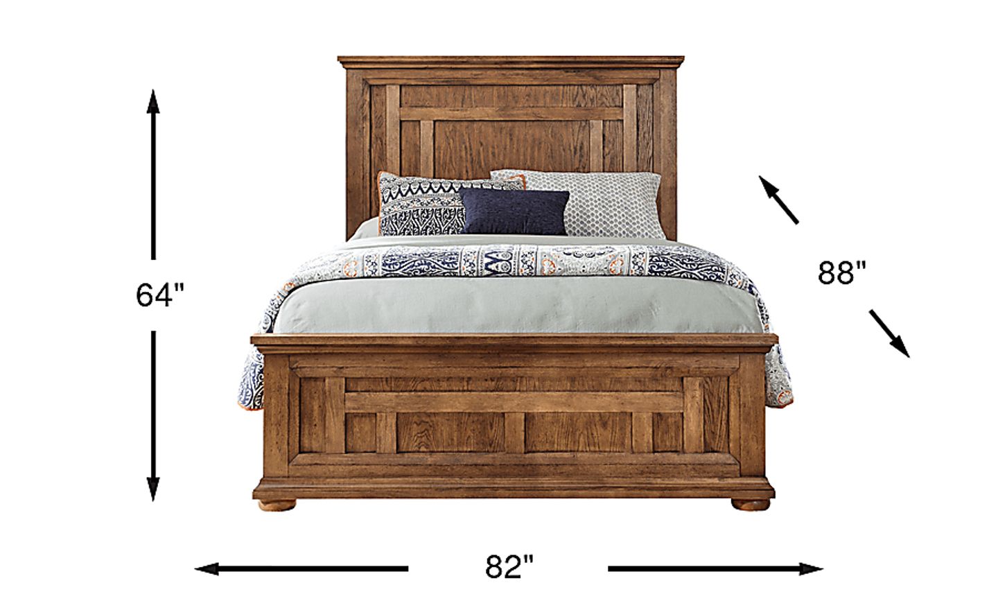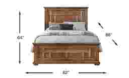 The beautifully crafted Sycamore Trail bed will transform your bedroom into a rustic haven. Made with oak veneers, this panel-style bed comes in a warm oak finish. A classic wood paneling design brings heightened detail. Frame moulding gives it a stately appearance, while bun feet add a special touch. Mattress and foundation (if required) sold separately. Bed shown is queen size.