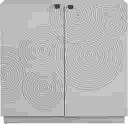 Certain to steal the spotlight with refined grace, the Sylvette collection acts as an effortless statement piece with its sleek silhouette and artful surface. This contemporary gray cabinet features a clean-lined frame and a sculpted pattern of concentric circles that drift across the doors, adding subtle texture and dimensional interest. Two doors open to generous concealed storage for dining essentials, media components or everyday organization, while the low plinth base keeps the look grounded and modern.