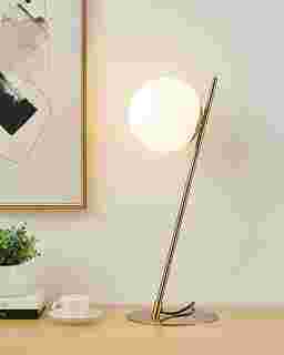 This lamp features a round white glass shade specifically designed to diffuse light softly and evenly across a space. While it provides enough illumination for light bedside reading or accenting a console, its primary function is to create a warm, ambient atmosphere. The opaque glass eliminates "hot spots" from the bulb, making it an excellent choice for modern living spaces where a relaxed, inviting mood is desired.