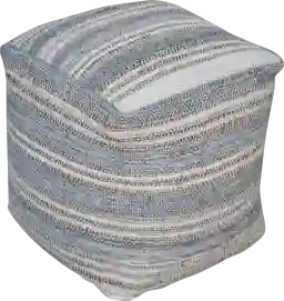 This pouf is upholstered in a handwoven fabric blend of acrylic and polyester. These synthetic fibers are specifically selected for their high durability and resistance to pilling and stretching. The tight handwoven construction not only creates a beautiful striped pattern but also adds a layer of structural integrity that helps the item withstand the rigors of daily use in busy households.