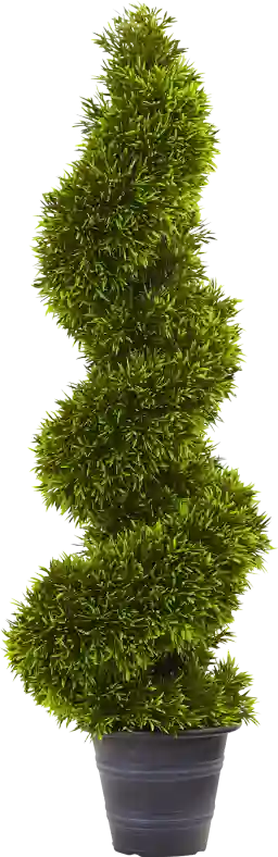 This 3-foot tall topiary comes with a classic deco-style planter, making it a ready-to-display focal point. To enhance its realistic appeal, you can place the included planter inside a larger decorative ceramic pot and surround the base with authentic textures like preserved moss or river stones. This adds a layer of natural detail that beautifully grounds the unique spiral design.
