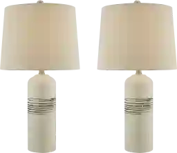 Ceramic is a premier material choice for lighting because of its durability and natural weight, which provides excellent stability on various surfaces. This set features a cream-colored ceramic base with a distressed glaze that adds a sophisticated, handcrafted feel. Ceramic is also heat-resistant and easy to maintain, making it a safe and long-lasting addition to high-traffic living rooms or active households.