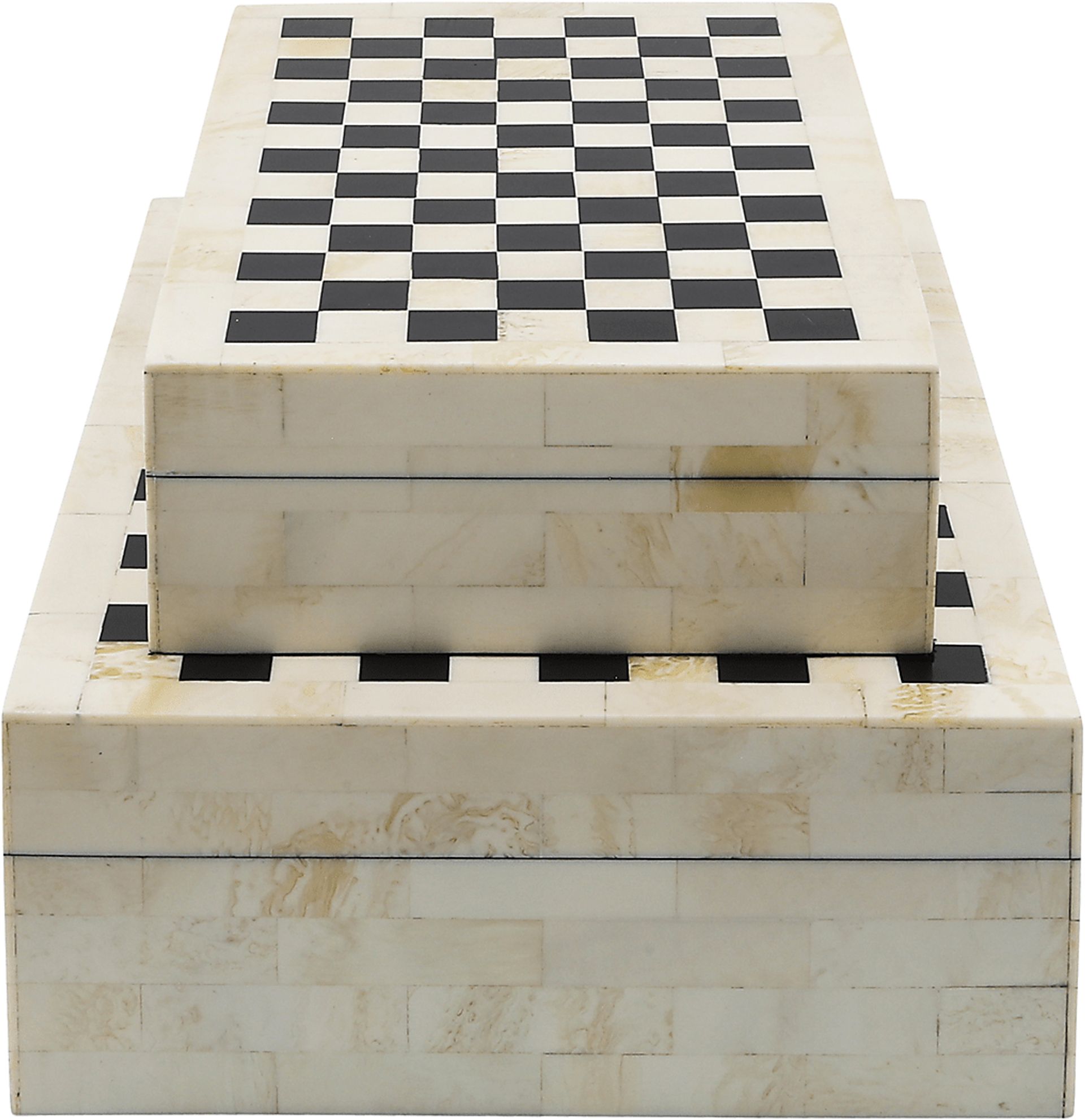 This is a stunning set of Tallapoosa resin boxes that feature a checkered top to resemble a small chess board. Featuring a black an white pattern that will add an elegant geometric touch to your home. An impressive purchase for any chess lovers out there.
