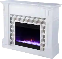 Blend classic style and modern convenience with this Talmadge I color changing electric fireplace. Sleek marble forms the unique surround pattern, bringing contemporary flair to your family room or dining area. Glowing faux fire logs craft a realistic fireplace look in your space, while flickering, color changing flames reflect off the faux crystal fill. Spend cozy evenings around the fire when you bring home this small space electric fireplace. Customer assembly is required.