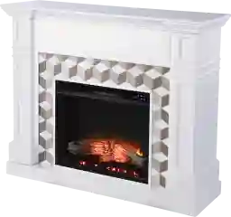 Blend classic style and modern convenience with this Talmadge IV freestanding electric fireplace. Sleek marble forms the unique surround pattern, bringing contemporary flair to your family room or dining area. Flickering LED flames craft a realistic fireplace look in your space, while glowing faux fire logs add ambiance, with or without heat. Spend cozy evenings around the fire when you bring home this small space electric fireplace. Customer assembly is required.