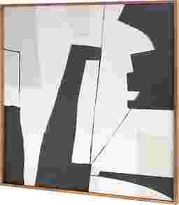 Nostalgia is a piece with a familiar appeal. Abstract shapes and graphic lines are made focal with the Taln, against soft, warm beiges. The solid pine frame is finished in a mid-tone brown echoing mid-century modern decor. Customer assembly is required.