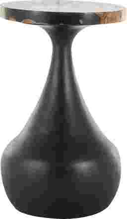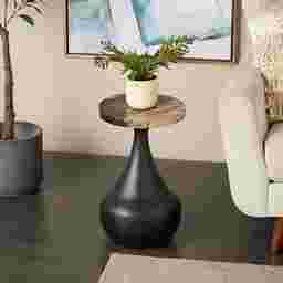 Embrace artistic expression with bold designs, sleek lines, neutral elements, and a minimalist aesthetic. The Taloru accent table is crafted from high-quality wood, making it a durable piece. This round table boasts a striking oiled black finish with a tabletop that features different tones of brown, creating a captivating focal point. This wood end table boasts elegant, fluted detailing that enhances its contemporary appeal.