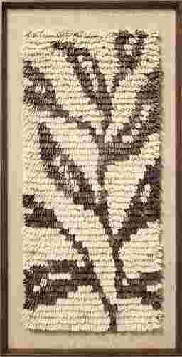 Tamarin is hand-tufted wall art with a neutral, brown-and-ivory botanical design, a beautifully textural accent for bohemian or natural home decor. The vertical artwork is crafted from wool and, measuring 50" x 26". Each piece is custom-framed, so dimensions may vary slightly (up to 1").