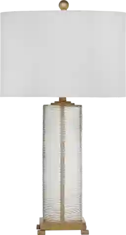 Introduce the Tamarind Summit lamp to your home to complete the contemporary look. This lamp features a clear ribbed glass and a gold leaf finish that provides it with a chic simplicity that compliments any living space. Partial assembly may be required.