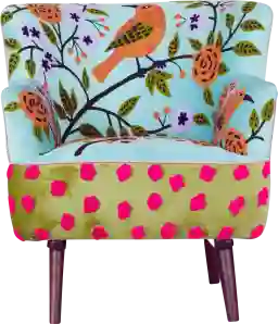 To successfully integrate a multi-colored floral piece like this chair, we recommend using it as a "statement piece." Balance its vibrant botanical embroidery by pairing it with a solid-colored sofa in a neutral tone like cream or a deep coordinating shade like navy blue. To create a cohesive look, pull one specific color from the embroidery—such as the blue or green—and echo it in your room's throw pillows or window treatments.