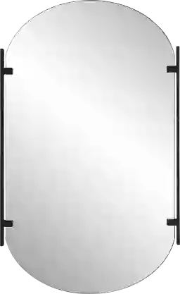 This Tatm contemporary style mirror features a pill shaped frameless mirror mounted in between two metal strips. Simple in design and finished in a satin black, this mirror will be perfect over a powder room vanity or make a statement and use over double vanities. May be hung either vertically or horizontally. Customer assembly is required.
