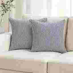 Decorate your space with this beautiful set of 2 Taung coastal throw pillows. Handmade from 100% cotton, it boasts a neutral design for both quality and style. With a classic striped pattern, it blends effortlessly into your existing decor, while adding a fresh look. Perfectly placed on your sofa, chair, or bed, it is sure to add elevated design and dimension. Poly inserts included.