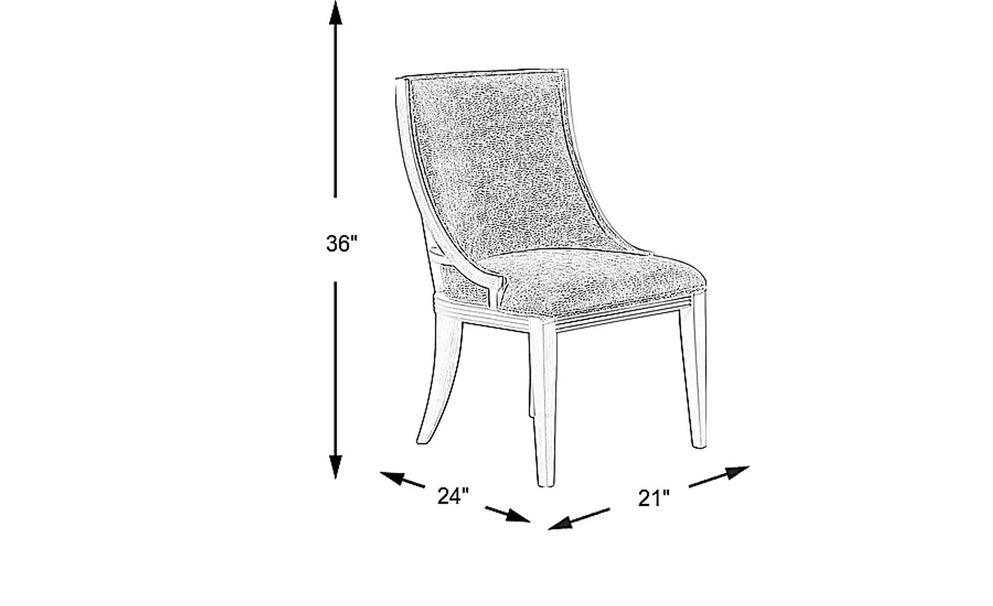 Offering a contemporary silhouette, the Taylor Trace side chair will satisfy your taste for both appealing design and comfort. The chair boasts soft gray upholstery, a curved back and decorative white wood back design. Made with wood solids, tapered front legs and flared back legs provide support.