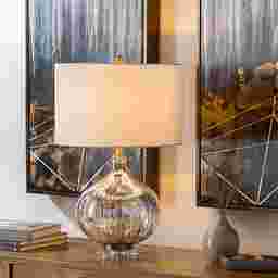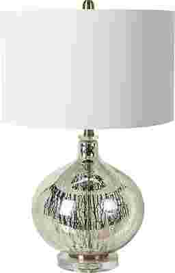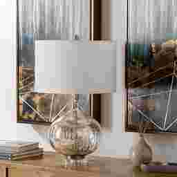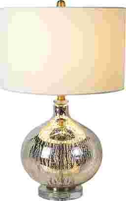 The Teaber Lane lamp is the perfect way to add modern style and sophistication to any room. The unique design features a glass base, linen shade, metal accents, and crystal detailing in a gold mercury finish for an eye-catching look. Add this statement piece to your home for an instantly upgraded look Partial assembly may be required.