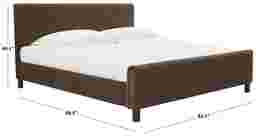 Introducing our lavish Teferi upholstered king bed in an elegant dark brown color, a true epitome of sophistication and charm. Crafted meticulously from select Birch and Plywood, this bed is decidedly sturdy and durable. Cloaked with a sumptuous linen fabric, its design exudes a timeless, classic appeal that elevates your room's ambience instantly. The dark brown hue adds a warm, inviting touch, making it an ideal sanctuary for ultimate relaxation after a hectic day. Comfort and style blend seamlessly in our Teferi king bed, paving the way for an exemplary contemporary lifestyle. A work of art in itself, our King Bed will undoubtedly be a pleasing addition to your bedroom interior. Invest in comfort for a restful sleep. Customer assembly required.