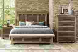 Includes:brown 3 pc king panel bed with bench • brown dresser • brown mirror • brown nightstand (2)