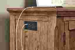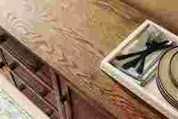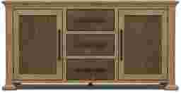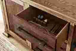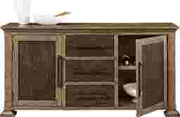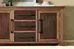 Savoring slow mornings and lingering over delightfully long lunches is the daily schedule when the Telluride collection from Cindy Crawford Home creates a welcoming dining space with its warm tones and comforting details. Rooted in traditional style, this buffet is crafted with oak veneers in a rich brown finish that beautifully highlights the natural intricacies of its wood grain look. Its gracefully molded top and legs showcase detailed craftsmanship, adding a subtle decorative touch. Two cabinets and three drawers are finished in a darker shade of brown for a contrasting touch, while black iron pulls lend a refined final touch.
