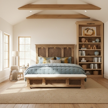 An integrated footboard bench is an excellent multi-functional solution for space-conscious shoppers. It provides a dedicated seating area for unwinding or getting ready without the footprint of a separate accent bench or armchair. This "smart-scale" design is particularly beneficial in urban guest rooms or master suites where maximizing every square foot of floor space is a priority.