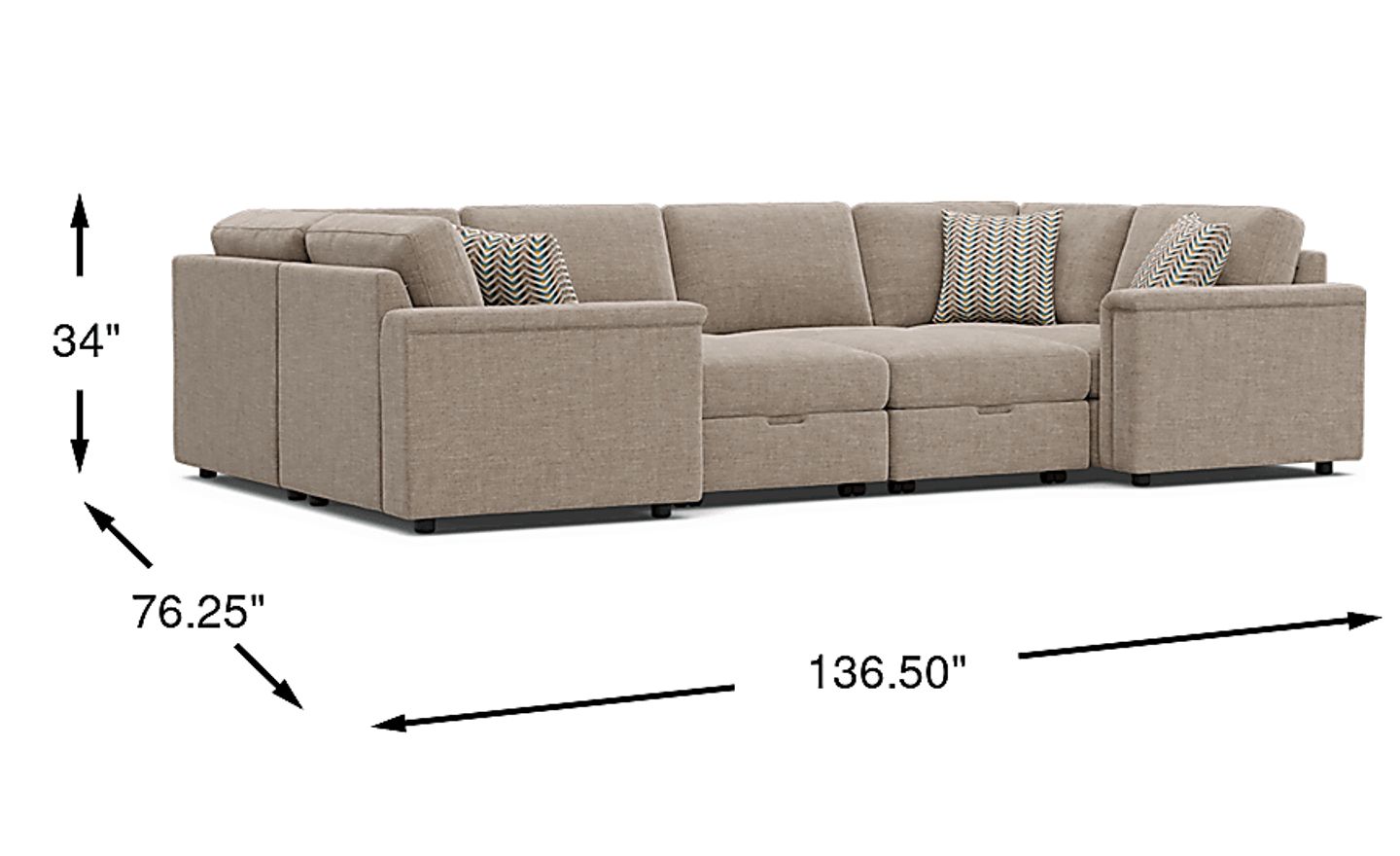 136.50"w x 76.25"d x 34.00"h