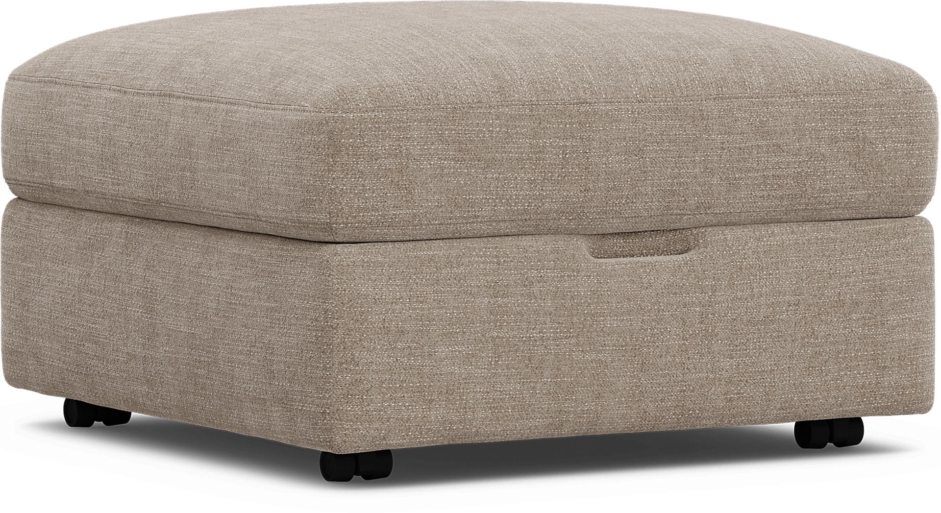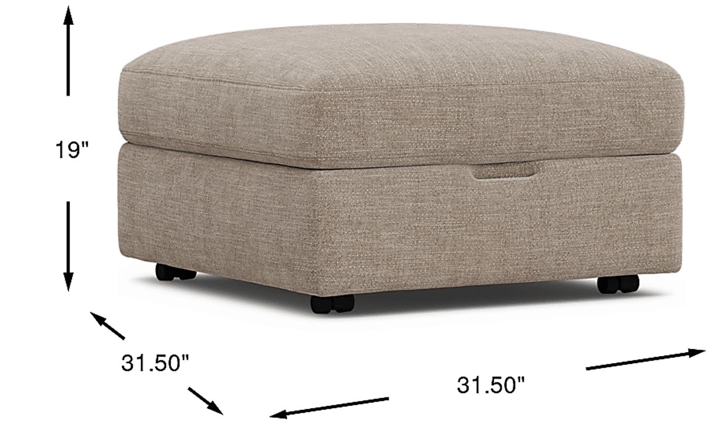 The world quiets... life's rhythms slow... serenity washes over you as you gently relax into the Tempo Modular collection, its effortless luxury flowing from the unity of form and function. This ottoman makes the ideal companion. A comfortably understated cushion upholstered in beige chenille swings open to reveal hidden storage, perfect for comfort items and anything you need for relaxation. Locking casters make this accent easy to move and stable wherever it rests. Upholstery: 100% Polyester.