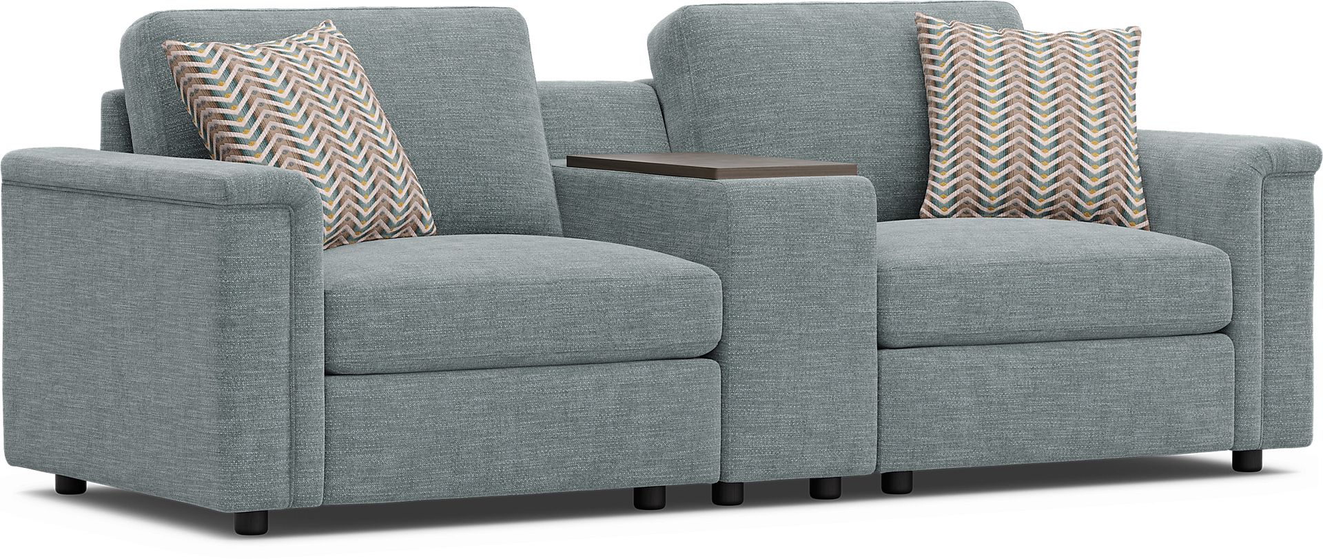 The integrated console is designed for modern convenience, featuring both USB-A and USB-C charging ports to keep your devices powered. Additionally, it includes swivel tables for a functional workspace or snack area, alongside hidden storage to keep your living room clutter-free.