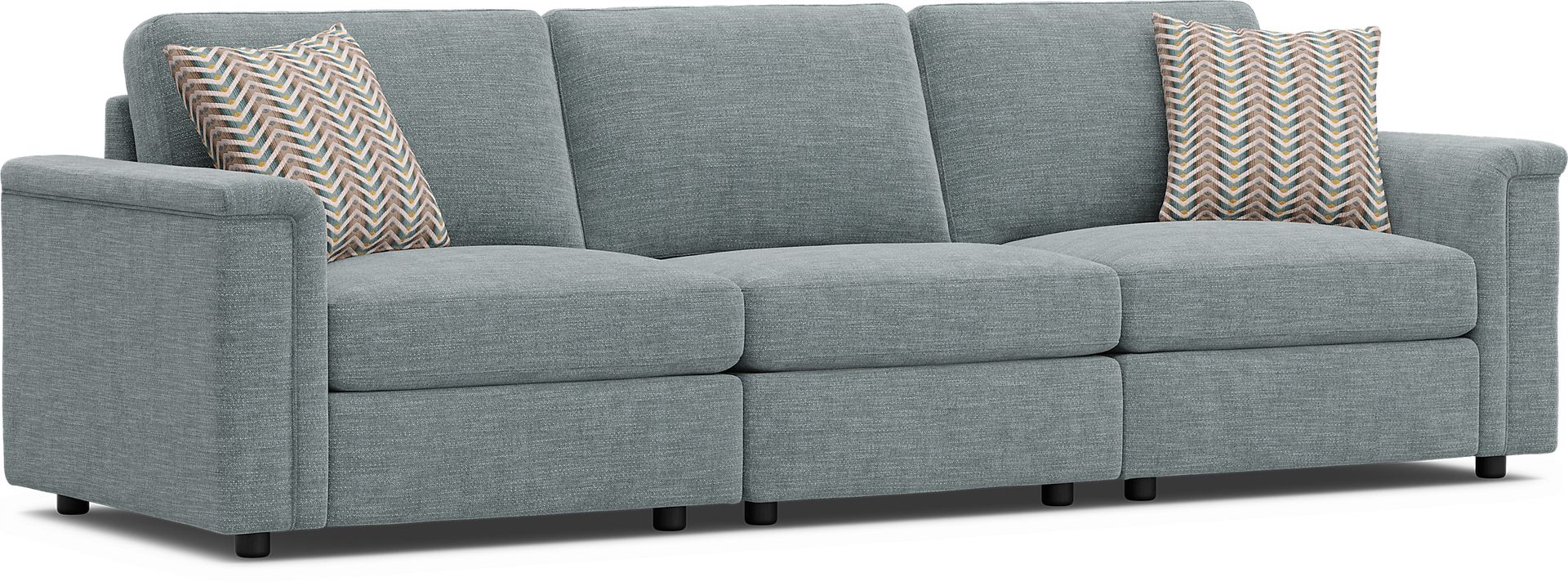 With a total width of approximately 108 inches, this configuration is well-scaled for medium to small living areas. A significant benefit for urban apartment dwellers is that the sectional ships as three separate modules. This makes it much easier to navigate through narrow hallways, elevators, and doorways during delivery compared to a standard, non-modular sofa.