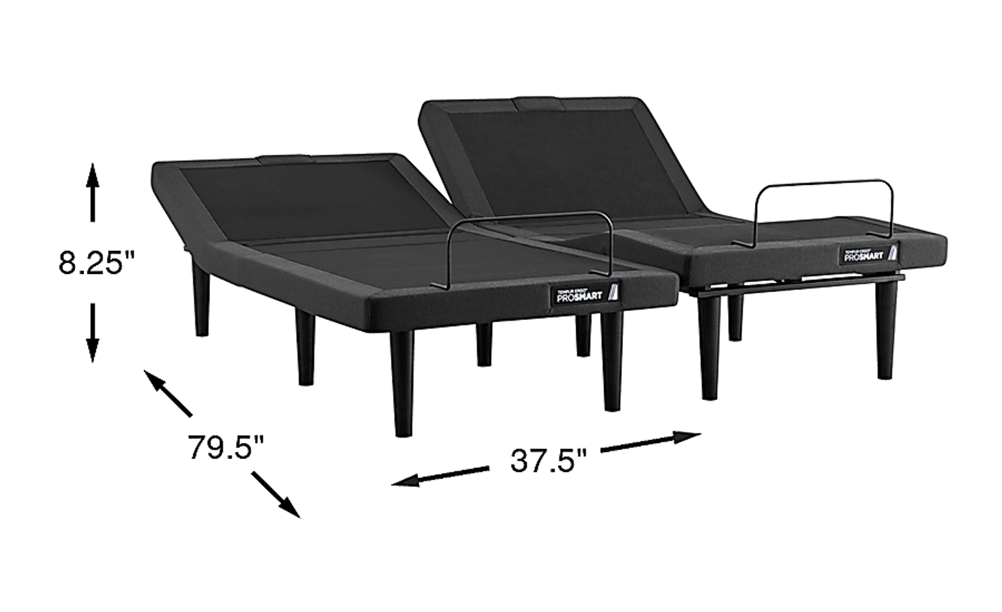 twin xl adjustable base: 37.50"w x 79.50"d x 3.75"h