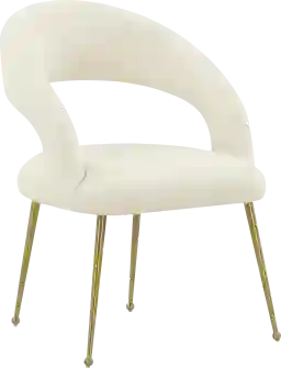 Mid-century modern meets Hollywood glam to form the striking Teracalie I cream armchair. Boasting lavishly soft upholstery and stylish stainless-steel legs, this versatile chair will enhance any dining area. Customer assembly is required.