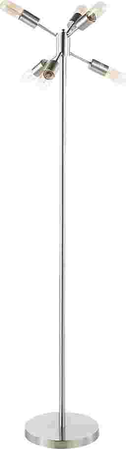 Sleek and refined the Teregram Road floor lamp compliments any contemporary space. With its slim stainless steel design and multiple exposed bulbs this lamp offers bright and illuminating overhead light throughout the room. Partial assembly may be required.