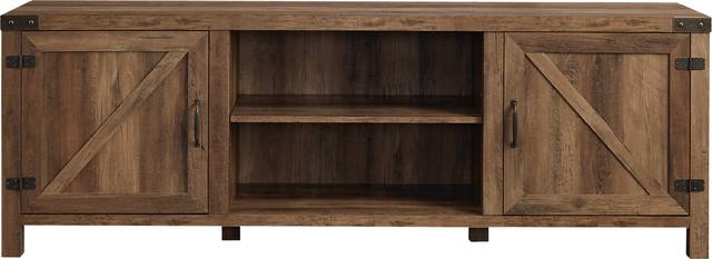 Surely you must be dreaming. There is no way that this attractive modern farmhouse Terhune TV stand has come to grace your living room. But of course, here it is in front of you. You reach out and feel the sleek laminate finish and painted metal brackets just to double check. The two barndoors really bring character to your furniture collection. You rub your eyes one more time, just making sure. Luckily, the sturdy entertainment is still there, with its three adjustable shelves and cord management holes. You cant wait to explore all the organizational possibilities. Customer assembly is required.