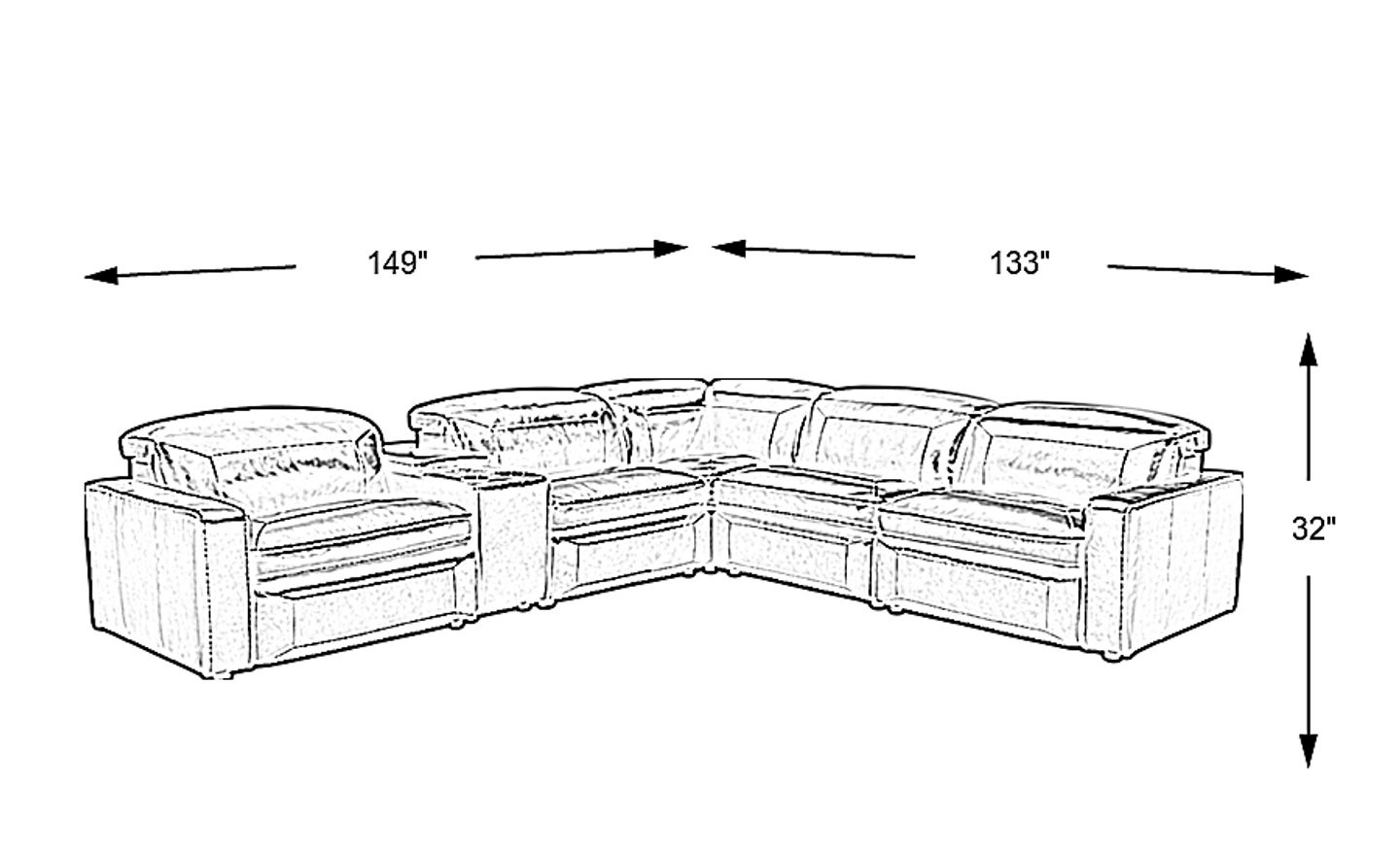149"w"w x 133"d"d x 32"h"h