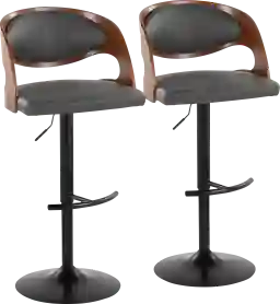 Uncork great kitchen and bar design with the Tescord III adjustable barstool featuring a polished bent wood back and upholstered seat. Hydraulics with 360 degree turn allow for easy adjustment and rich color combinations add a lively spirit to this unique stool. Customer assembly is required.