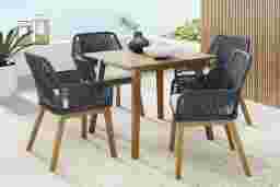 Tessere Natural 5 Pc Square Outdoor Dining Set with Blue Arm Chairs
