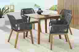 Intricately refined with contemporary flair, the Tessere dining table is a stylish choice for any outdoor space. Crafted from solid eucalyptus in a natural finish, this 35" square dining table features a plank top design with ample room for mealtimes.