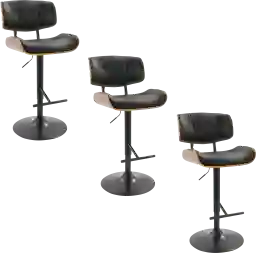 Add mid-century flair to your bar or counter area with the Tesshire Black Adjustable Swivel Barstool, Set of 3. Enjoy the plush tufted faux leather seats and backrest over bent wood providing optimal support and comfort. The Tesshire adjusts to your preferred height and swivels 360 degrees. Available in a variety of frame and upholstery combinations, choose the colors that suits your space best. Customer assembly required.