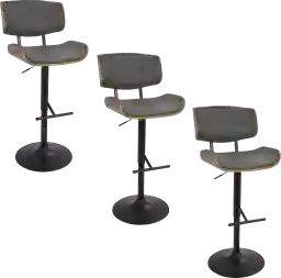 Add mid-century flair to your bar or counter area with the Tesshire Gray Adjustable Swivel Barstool, Set of 3. Enjoy the plush tufted faux leather seats and backrest over bent wood providing optimal support and comfort. The Tesshire adjusts to your preferred height and swivels 360 degrees. Available in a variety of frame and upholstery combinations, choose the colors that suits your space best. Customer assembly required.