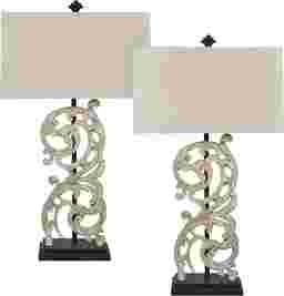 Muted colors and a subtle coastal vibe give the Tettenhall tale lamp a distinctive look. Featuring a scroll iron body, white wash finish, and an oatmeal linen shade.