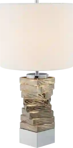 This lamp includes a built-in LED nightlight that illuminates the smoked stacked glass accents in the base. This provides a soft, warm glow that is ideal for navigating a room at night without the harshness of a primary bulb. It is particularly effective for creating a "cozy" atmosphere in a living room or providing a gentle guiding light in a primary suite.