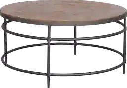 This Thaxton round cocktail table adds mixed materials and an eye-catching silhouette for a modern look. This living room table has an industrial-inspired steel base in a gunmetal finish. The geometric patterned top is crafted from engineered wood with a natural brown finish. This rich tone brings out the wood grain and brings a rustic feel to this piece. The spacious top is large enough to rest snacks and drinks or display your favorite decor. Customer assembly is required.