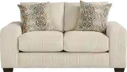 Put the day aside, let worries fade and ease back into luxe relaxation as the The Challenge loveseat from Drew & Jonathan Home becomes your haven of soft texture, calming color and soothing comfort. Cozy corduroy in cream beige graces every curve, accentuating the plush seats and wide track arms with casual contemporary style. Deep seats encourage lingering conversations and the occasional afternoon nap, while reversible cushions make it simple to keep the look fresh and inviting. Coordinating pillows complete the look with a generous touch of adjustable comfort. Upholstery: 100% polyester.