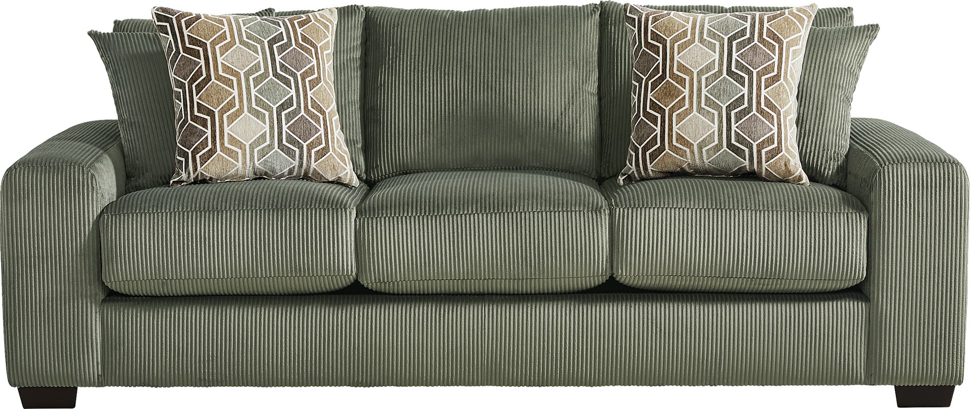 Put the day aside, let worries fade and ease back into luxe relaxation as the The Challenge sofa from Drew & Jonathan Home becomes your haven of soft texture, calming color and soothing comfort. Cozy corduroy in sage green graces every curve, accentuating the plush seats and wide track arms with casual contemporary style. Deep seats encourage lingering conversations and the occasional afternoon nap, while reversible cushions make it simple to keep the look fresh and inviting. Coordinating pillows complete the look with a generous touch of adjustable comfort. Upholstery: 100% polyester.