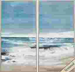 Set of two coastal images that has an acrylic overlay hand applied to the image. They are then framed without glass in a complimenting moulding.