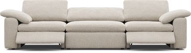 Quiet confidence takes shape, and unwinding feels as natural as breathing with The Flow from Drew & Jonathan, a collection that turns everyday lounging into a quiet ritual of calm and connection. Wrapped in soft gray chenille, this contemporary sectional rests on a cloud-like foundation of deep, oversized seating and gently rounded radius arms topped with loose cushions for an added layer of softness. Dual power reclining offers the perfect angle of comfort with easy adjustment to the footrests and headrests, while the bumper ottoman adds extra space to stretch out. Upholstery: 100% Polyester. Accent pillows not included.