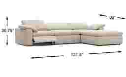 Since this model features dual power reclining mechanisms, it will need to be positioned near a power outlet. Additionally, when planning your layout, ensure there is sufficient "wall clearance" behind the sectional and floor space in front to allow the headrests and footrests to extend fully without hitting walls or other furniture like coffee tables.