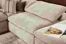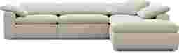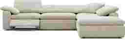 Quiet confidence takes shape, and unwinding feels as natural as breathing with The Flow from Drew & Jonathan, a collection that turns everyday lounging into a quiet ritual of calm and connection. Wrapped in soft gray chenille, this contemporary sectional rests on a cloud-like foundation of deep, oversized seating and gently rounded radius arms topped with loose cushions for an added layer of softness. Dual power reclining offers the perfect angle of comfort with easy adjustment to the footrests and headrests, while the bumper ottoman adds extra space to stretch out. Upholstery: 100% polyester. Dual power LAF recliner, armless chair, corner wedge, bumper ottoman.