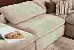 A bumper ottoman is a specialized sectional component that ends in an open, backless cushion rather than a standard armrest. In this 5-piece configuration, the bumper ottoman provides a versatile lounging surface that makes the sectional feel more open and airy. It’s an ideal feature for open-concept homes as it allows for easy access from multiple sides and provides extra "chaise-like" space for stretching out during movie nights.