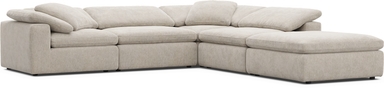 Quiet confidence takes shape, and unwinding feels as natural as breathing with The Flow from Drew & Jonathan, a collection that turns everyday lounging into a quiet ritual of calm and connection. Wrapped in soft gray chenille, this contemporary sectional rests on a cloud-like foundation of deep, oversized seating and gently rounded radius arms topped with loose cushions for an added layer of softness. The bumper ottoman adds extra room to stretch out and easily shift from one end to the other. Upholstery: 100% polyester. Accent pillows not included.