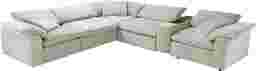 This piece features a cloud-like foundation defined by deep, oversized seating and contemporary "radius" arms. Unlike more structured, formal sofas, this sectional uses loose cushions that provide a more relaxed, customizable lounging experience. The design focuses on "Quiet Confidence," offering a ritual of calm through its generous proportions and soft, layered feel.
