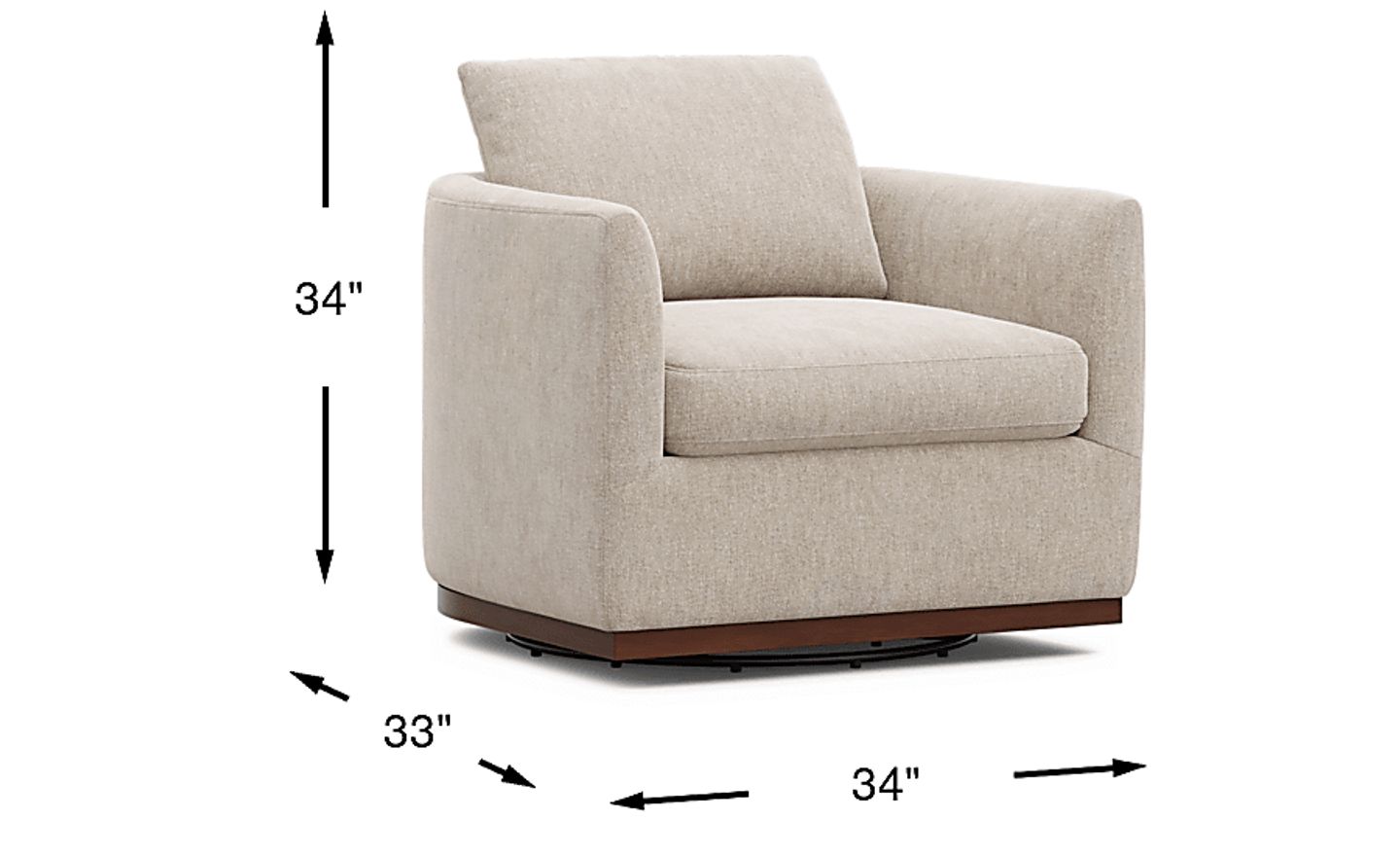 Yes, with dimensions of 34"w x 33"d x 34"h, this chair is expertly scaled for compact living rooms, home offices, or bedrooms. The rounded barrel back and radius arms provide a cozy, enclosed seating experience that maximizes comfort without occupying a large footprint, making it ideal for multi-functional spaces where floor area is at a premium.