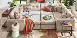 Discover the limitless possibilities of the Drew & Jonathan ModularOne, thoughtfully designed with comfort and flexibility in mind. This customizable seating solution features individual pieces that can be reconfigured to the shape you need. Game days, movie nights, sleepovers, and everyday relaxation are all better when the seating arrangement you want is always right at your fingertips.Each individual piece is upholstered on all sides in our signature fabric, New Horizon. This soft, beige chenille includes Repreve yarn, made with recycled plastic bottles. The seating area has welted track arms, top-stitched seat cushions and button-tufted back cushions for an elegant silhouette. Two ottomans on casters slide into the middle and lock in place to create a cozy area the whole family can enjoy. A matching pillow provides the perfect final touch. Includes LAF chair, two corner wedges, 2 armless chairs, 2 ottomans, & RAF chair. Visit a showroom to learn more about individual components and to work with a sales specialist to customize your own configuration today.